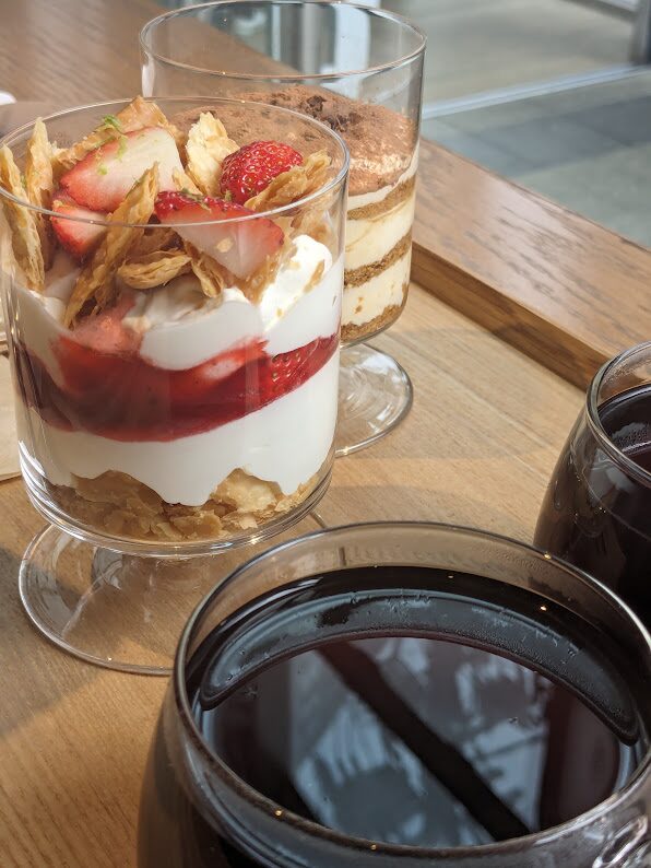 ・なんかいつも並んでいるような気がする店。しばらく並んでいた。店内は飾り気がなく更にミニマルな無印良品みたいだなぁ~と身も蓋もない印象を受けた。カウンターなら回転が早いらしく2階を見ないままカウンター席へ。シングルオリジンとティラミスを食べた。友人はイチゴを食べていた。