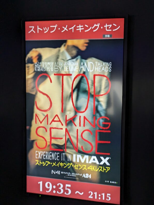 ・お腹いっぱいで映画見た。『ストップ・メイキング・センス 4Kレストア』をIMAXで。当然良かった。