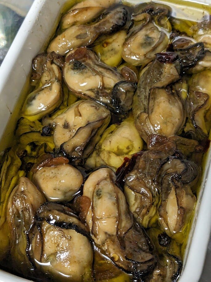 ・食パンを2枚焼いて牡蠣をのっけたり油に浸して食べたりした。