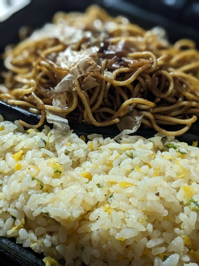 ・コンビニで馬鹿っぽいチャーハン&焼きそば弁当を買った。
