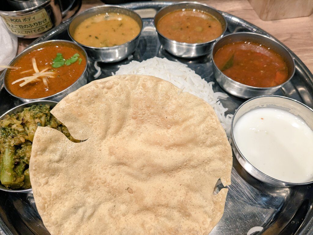 ・グランフロント大阪のエリックサウスで昼食。始めての店舗だけどカウンターが狭くて食べるのが大変だった。西天満は一人席でも余裕があるので時間がある限りは歩いてそっちまで行ったほうが良い。ライスをおかわりして満腹になった。
